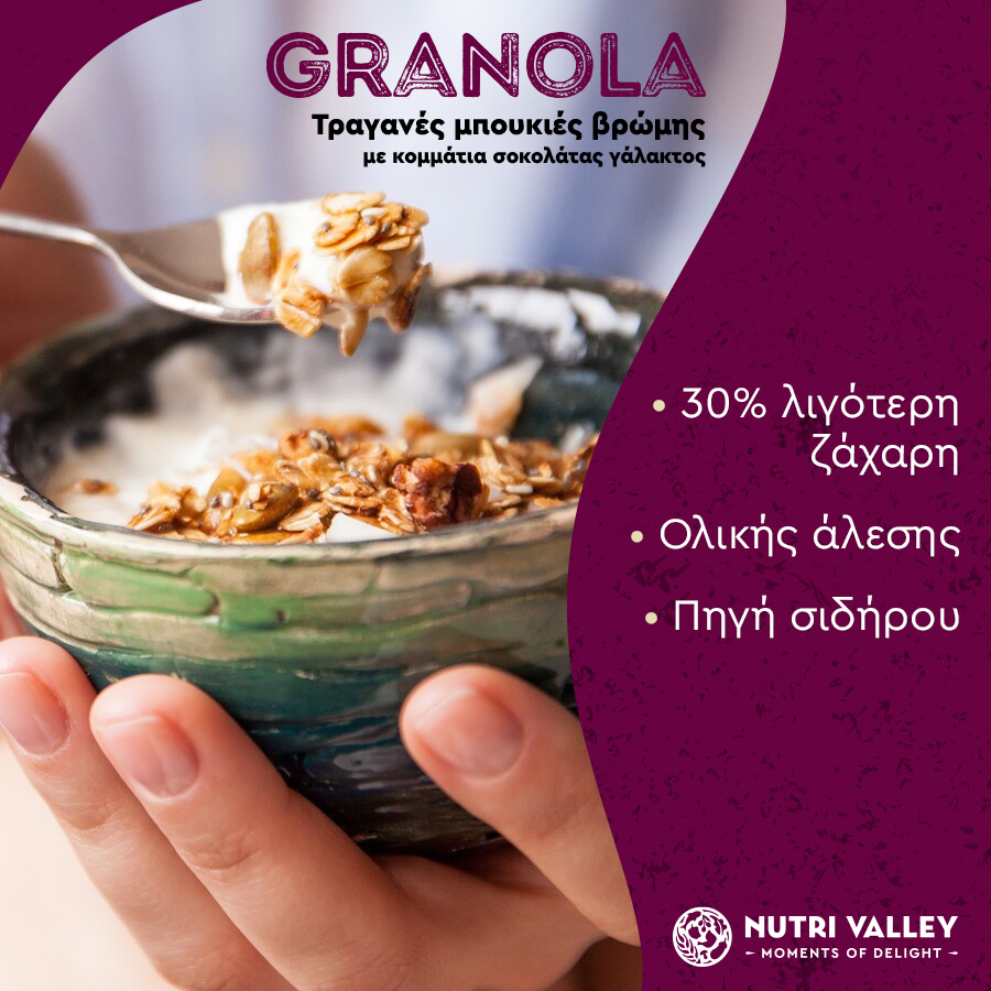 Νιφάδες βρώμης ολικής άλεσης 59%, Ηλιέλαιο, Ολιγοφρουκτόζη, Κομμάτια σοκολάτας γάλακτος 7% (Ζάχαρη, Πλήρες γάλα σε σκόνη, Βούτυρο Κακάο, Κακαόμαζα, Πρωτεΐνη γάλακτος σε σκόνη, Αποβουτυρωμένο γάλα σε σκόνη, Γαλακτωματοποιητής: Λεκιθίνη Σόγιας, Φυσική αρωματική ύλη βανίλιας), Ζάχαρη, Σιρόπι γλυκόζης, Αλεύρι ρυζιού, Αλεύρι καλαμποκιού, Αντιοξειδωτικό: εκχύλισμα πλούσιο σε τοκοφερόλες, Γαλακτωματοποιητής: λεκιθίνη ηλίανθου, Αρωματικές ύλες, Αλάτι.